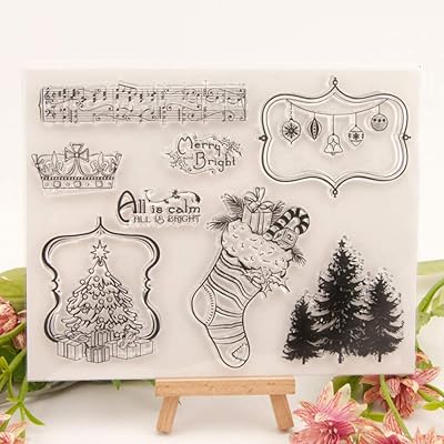 6 sheets christmas clear silicone stamps decorative xmas theme santa deer winter wonderland scrapbooking stamps for card making diy photo album (cute style) 4.3 out of 5 stars.